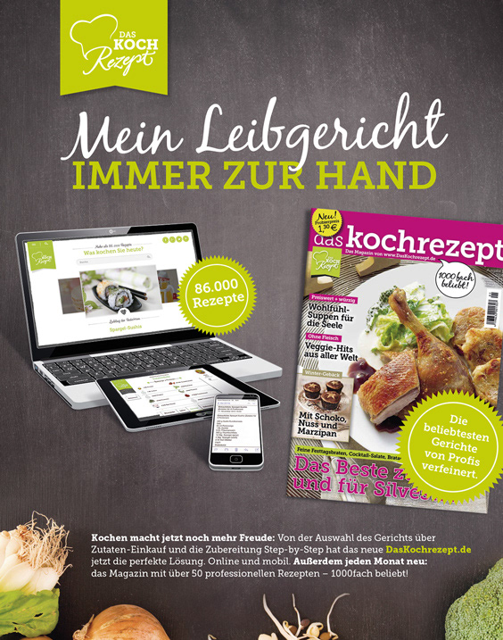 Conception and design of Burda Verlag's online platform "Das Kochrezept", including logo development and advertisements for various magazines (2013).