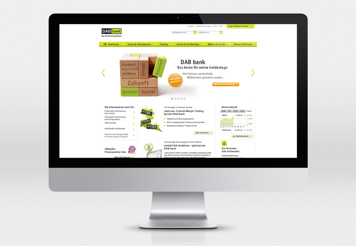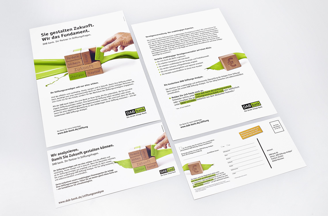 Layouts for printed advertising materials as well as for the online area for various DAB Bank products and animated banner ads (in corporation with Antweiler und Ische GbR).